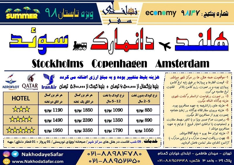 ? پکیج تور دور اروپا (هلند – دانمارک – سوئد) ویژه تابستان 98